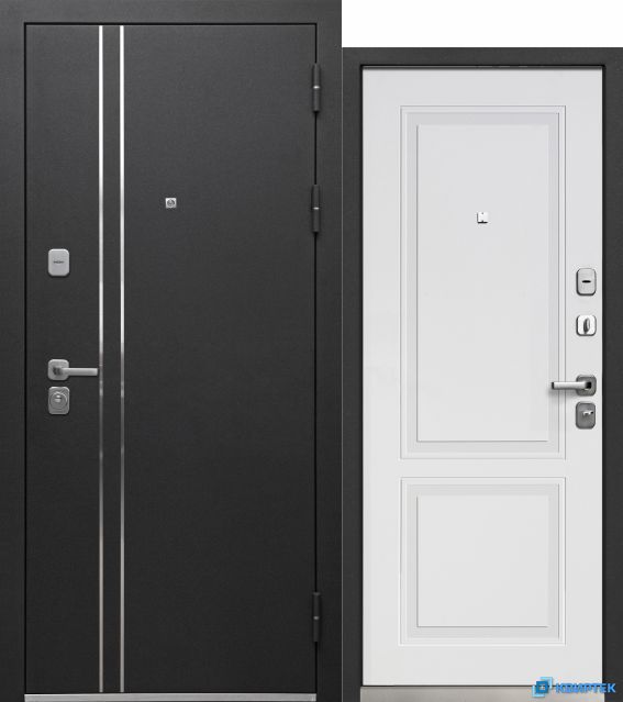 • Накладки: броненакладка основного замка, декоративная дополнительного замка с защитой от сквозняка; цвет - сатин хром