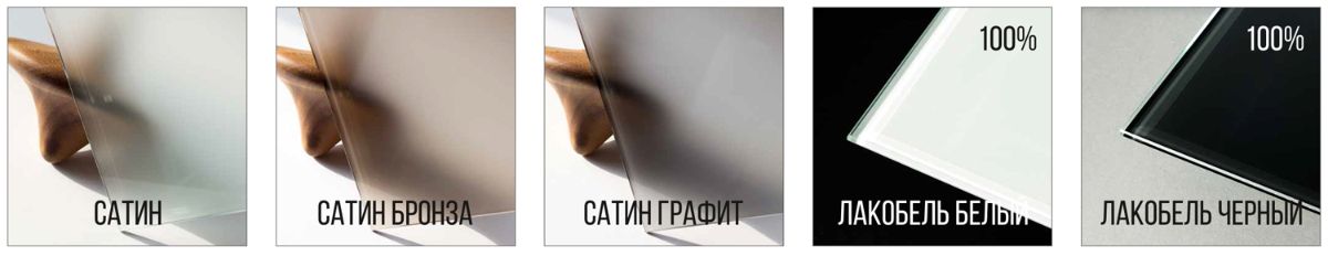 - варианты остекления (4 мм): Сатин (матовое); Сатин бронза, графит (матовое); Лакобель (белый, черный), зеркало; прозрачное